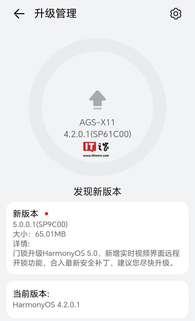 门锁升级 HarmonyOS 5.0,新增实时视频界面远程开锁功能,合入最新安全补丁,建议您尽快升级