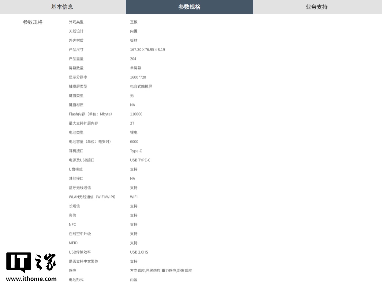 该机尺寸为 167.30×76.95×8.19mm、重约 204g,配备 USB Type-C 接口(USB 2.0HS 传输速率),其屏幕分辨率为 1600*720,内置 6000mAh 电池。