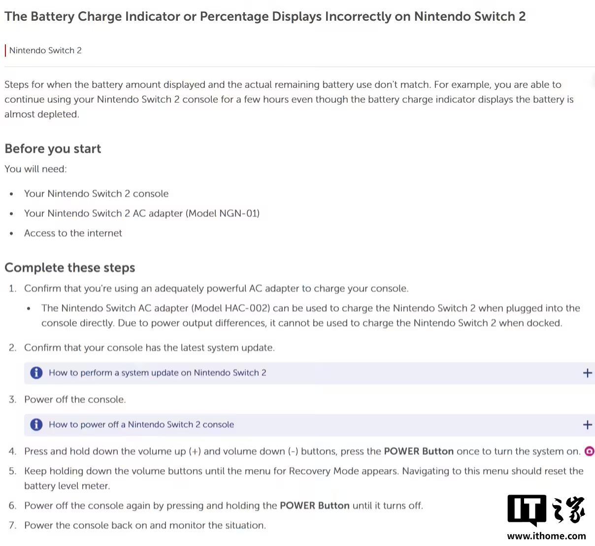 IT之家 6 月 12 日消息,据外媒 The Verge 今日报道,任天堂通过最新的支持文档表示,当 Switch 2“电池电量显示与实际可用时间不符”时,比如电量指示几乎为零却还能继续使用数小时,可以按照文档中的建议操作。