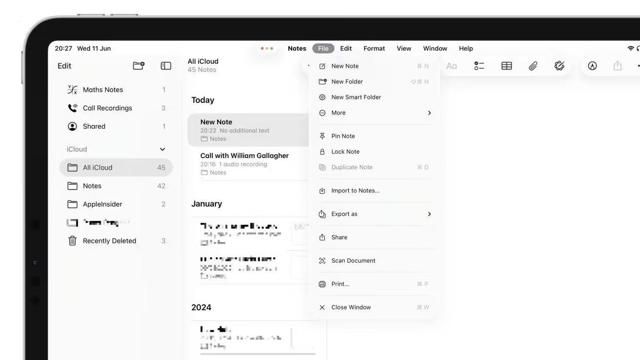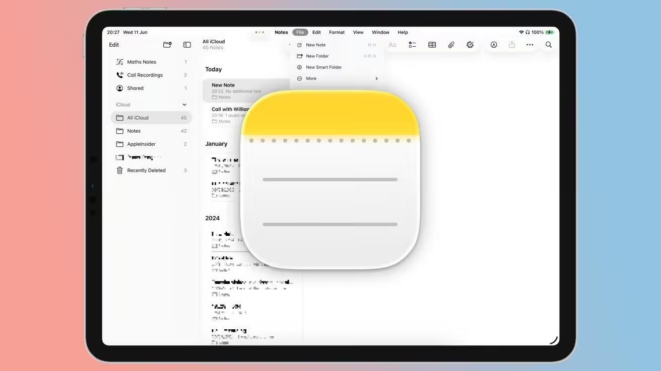IT之家 6 月 12 日消息,科技媒体 AppleInsider 昨日(6 月 11 日)发布博文,详细介绍了在 iPadOS 26 系统上,苹果为备忘录(Apple Notes)应用带来的诸多改进。新版本新增了通话录音转录功能,支持将笔记导出为 Markdown 文件,并引入了全新的菜单栏设计。