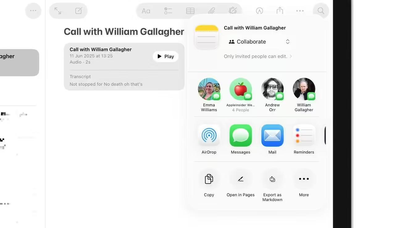 通话结束后,录音和转录文本会自动存入备忘录应用中一个名为“Call Recordings”的文件夹。此功能此前仅在 iPhone 上可用,如今扩展到 iPad,让用户能更轻松地记录和回顾重要通话内容。