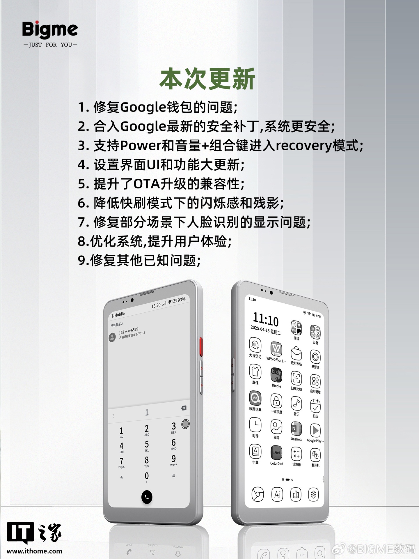 IT之家附 Bigme HiBreak Pro 墨水屏手机此次更新内容如下: