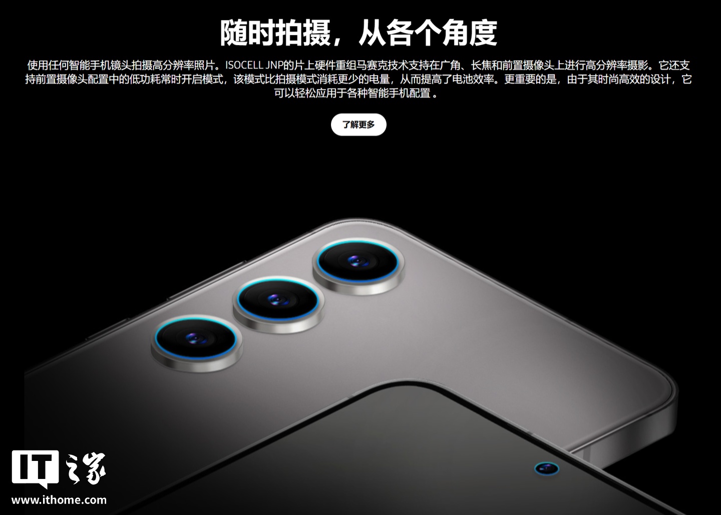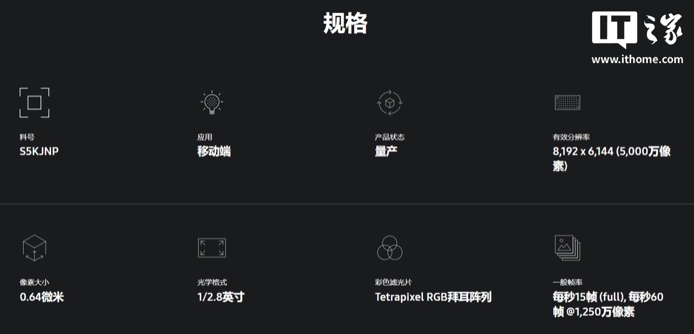 IT之家 7 月 14 日消息,三星半导体官网今日上线了“ISOCELL JNP”手机 CMOS,像素数为 5000 万,尺寸为 1/2.8 英寸,目前已量产。