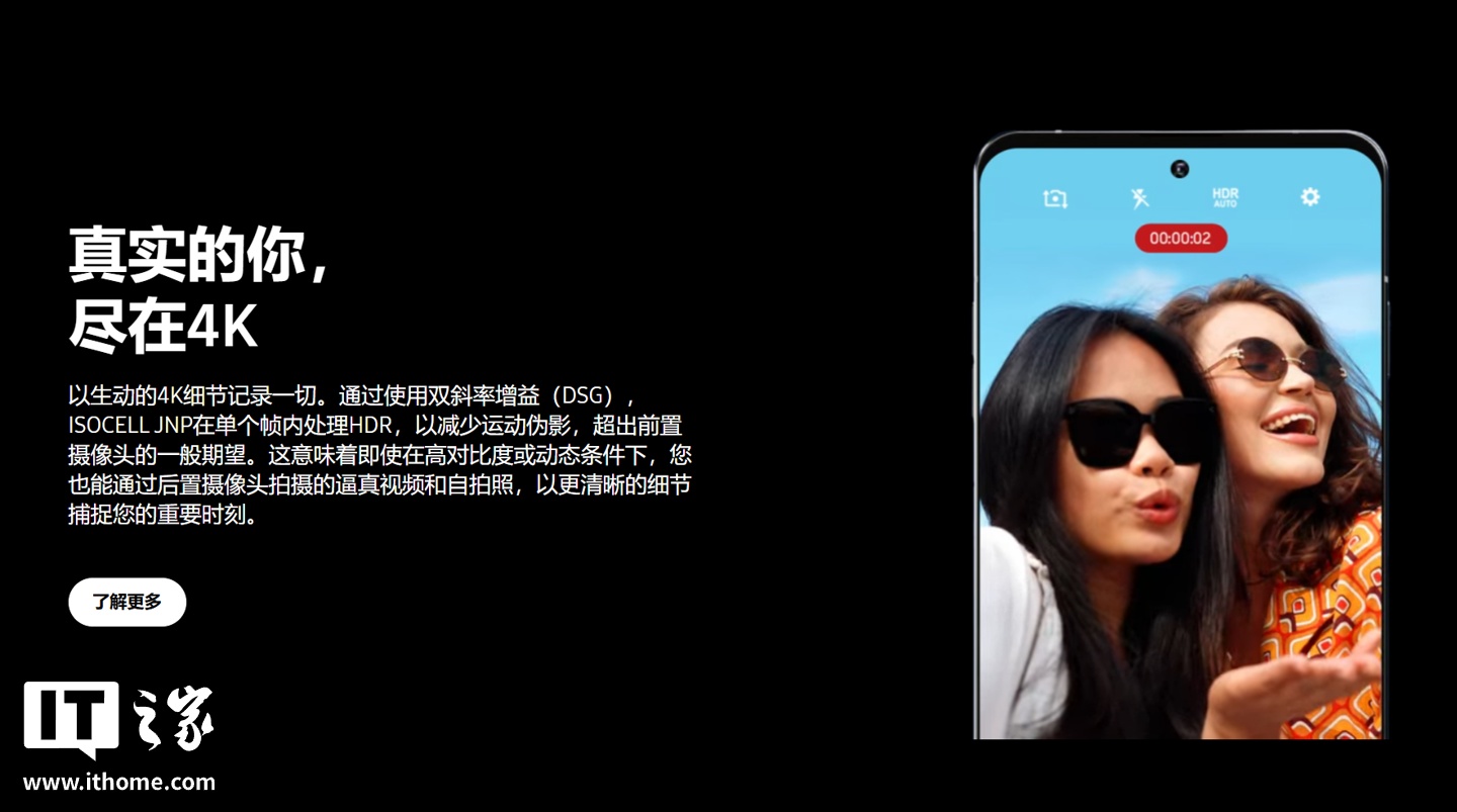 ISOCELL JNP 的片上硬件重组马赛克技术可应用在广角、长焦和前置摄像头上,如应用在前置摄像头中还支持低功耗常时开启模式,相比普通的拍摄模式消耗更少电量,提升了电池效率。