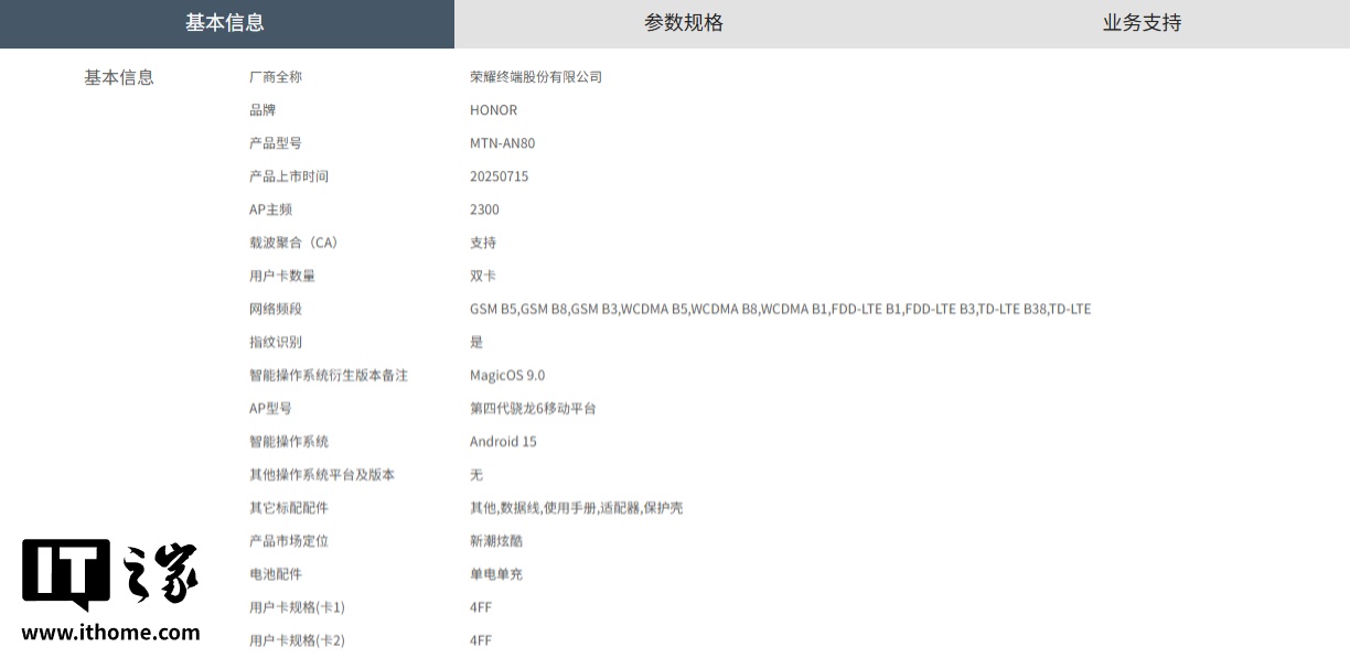 IT之家注:目前认证页面提供荣耀 X70 的两种型号以及线上版、演示样机、标准版以及不同规格的版本,不同型号的价格信息存在一定出入,例如 MTN-AN80 型号的 12+256GB 版本价格为 1999 元,而 MTN-AN00 的同规格(含线上版 / 标准版 / 演示样机)价格为 2499 元。因此上述价格仅作参考。
