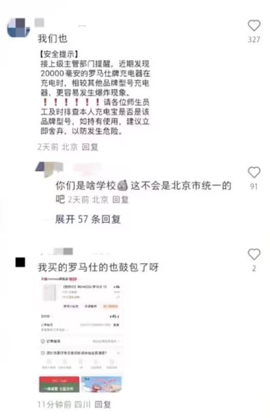 网传北京多所高校禁用罗马仕充电宝,工作人员回应“自燃概率比较高”