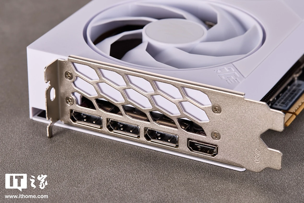 接口方面,影驰 GeForce RTX 5050 圣刃 OC 显卡的 I/O 接口挡板基本与侧边平齐,提供 3 个 DP2.1b 接口以及 1 个 HDMI2.1b 接口。