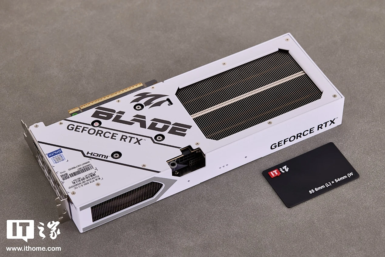 尺寸方面,影驰 GeForce RTX 5050 圣刃 OC 显卡的标称参数为 316.5*140*40mm,延续了刃系列坚持的标准 2-slot 设计,在机箱兼容性上更加友好。