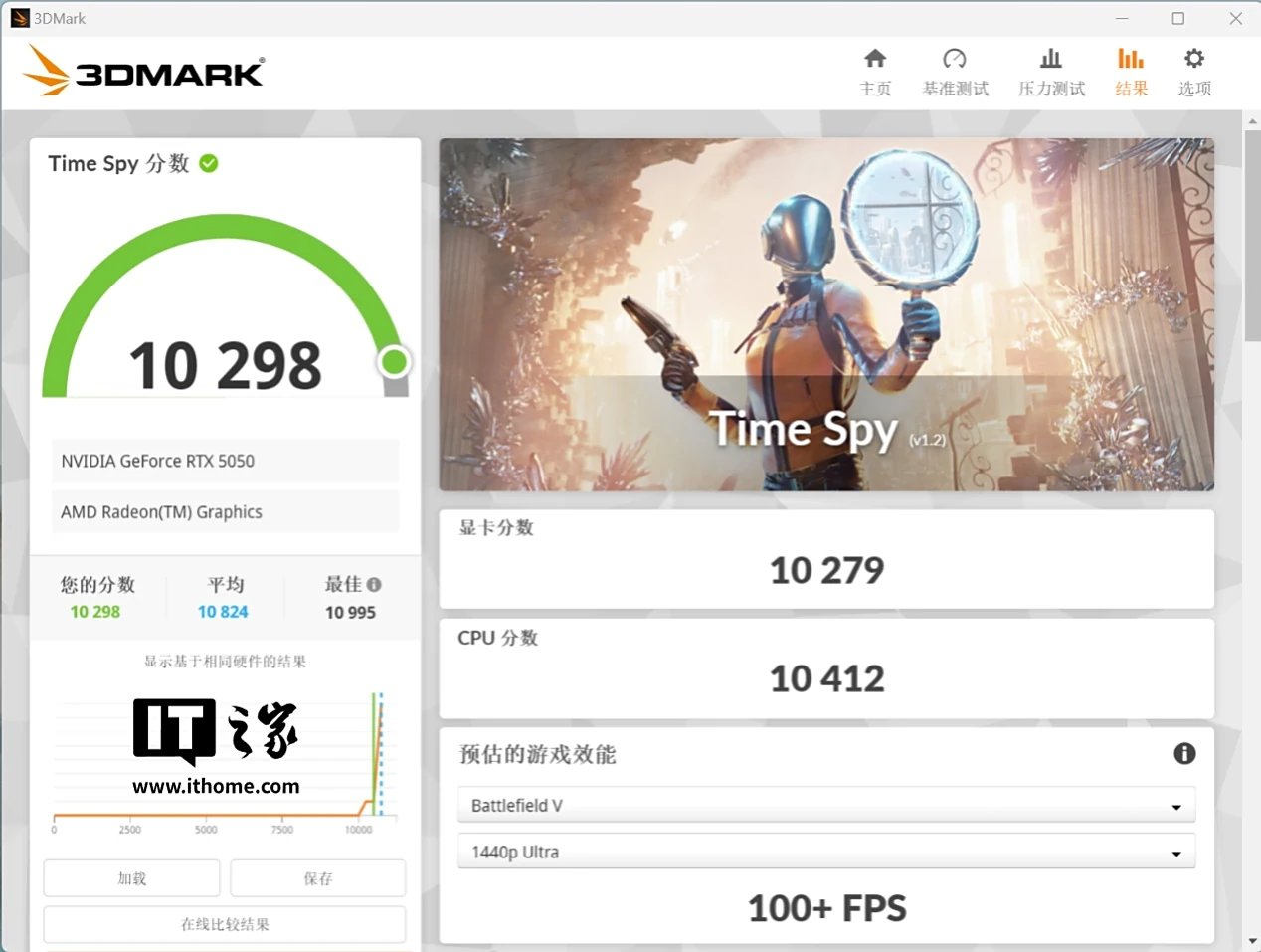 RTX 5050 的显卡分数为 10279 分;