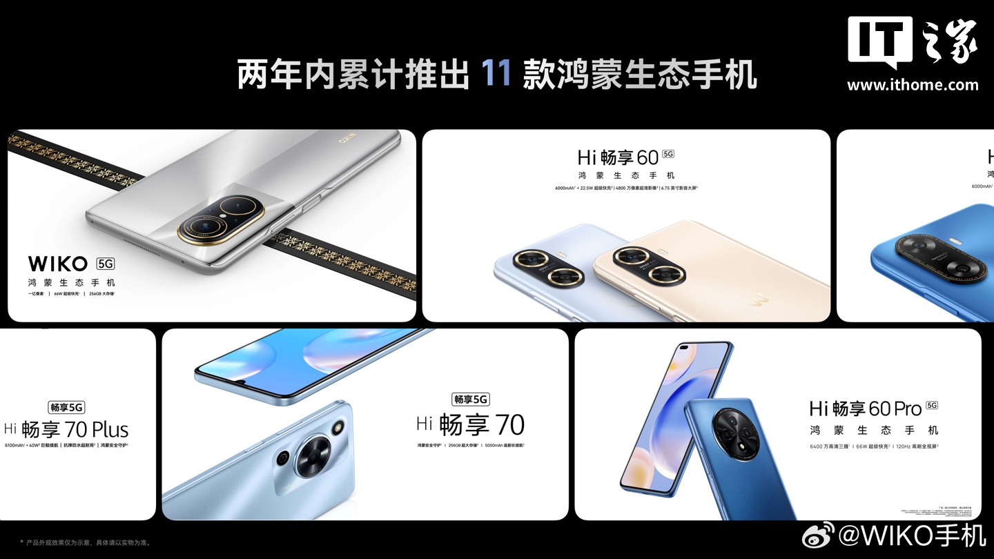 目前,WIKO 已累计推出了 11 款鸿蒙生态手机,服务了数百万用户;去年发布了 Hi MateBook 系列,主打智慧办公新场景。