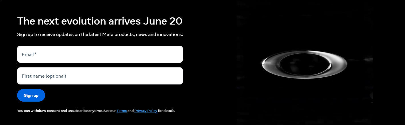 预告视频的结尾部分展示了Oakley和Meta两个品牌标识并排出现的画面,其呈现方式与此前推出的Ray-Ban Meta智能眼镜的品牌标识设计高度相似。同时,Meta官方网上商店也出现了相应的宣传横幅,使用了与预告片相同的宣传语——“下一代进化将于6月20日到来”,并提供了产品资讯订阅服务。