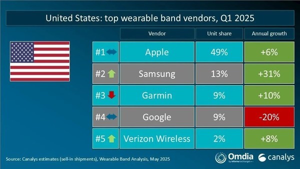 6月18日,Canalys的最新数据显示,2025年第一季度,全球可穿戴腕带设备市场迎来强劲增长,出货量达4660万台,同比增长13%。去年同期基数较低以及市场需求回升,成为推动整体增长加速的关键因素,基础手环、基础手表和智能手表这三大主要产品品类均实现增长,有力地推动了市场扩张。