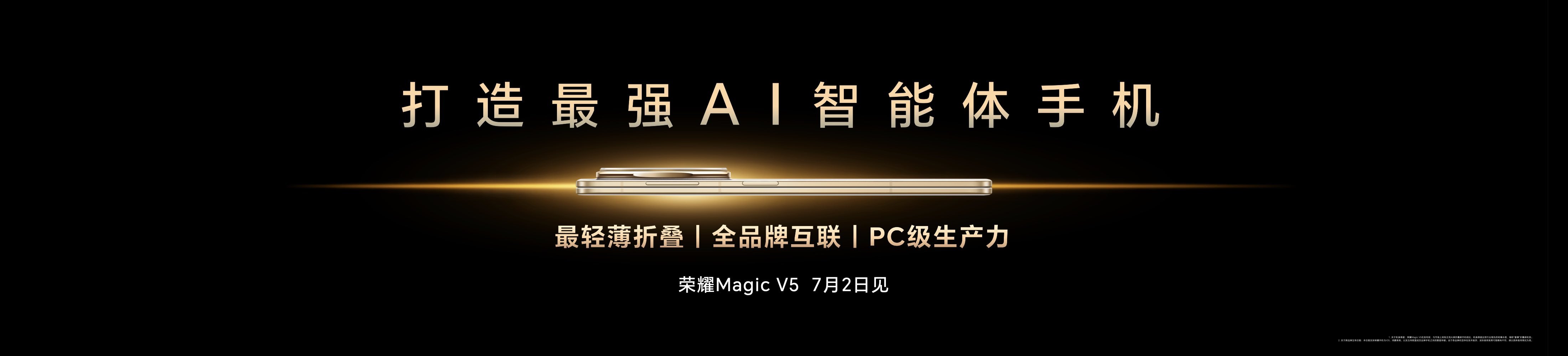 作为该战略的最新实践成果,李健在现场宣布,荣耀新一代AI折叠旗舰荣耀Magic V5将于7月2日正式发布。据介绍,这款新品将率先落地全栈式个人知识库、由多智能体协同带来的PC级生产力,以及跨品牌互联等核心AI能力。延续荣耀在折叠屏领域的轻薄优势,荣耀Magic V5的目标是成为全球最轻薄的折叠屏手机