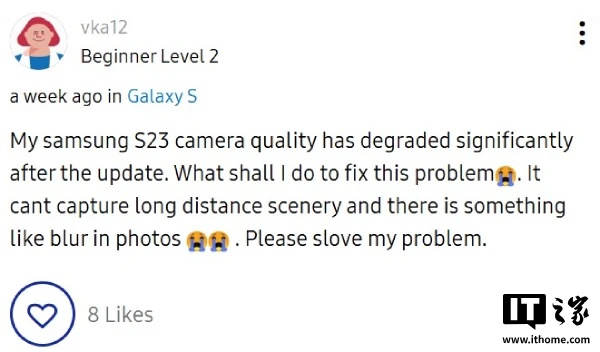 许多受影响的用户尝试了常规的故障排除步骤,如清除相机应用的缓存或重置设置,但问题并未得到明显改善。IT之家附上相关截图如下: