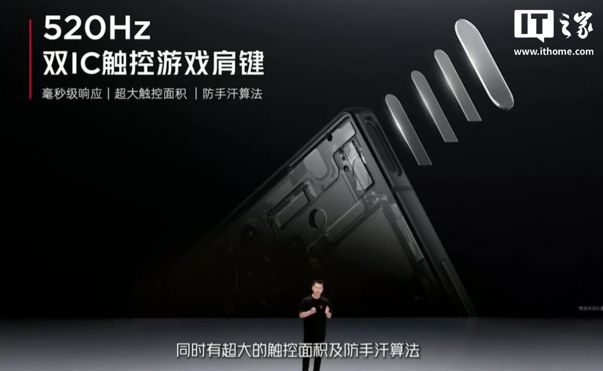 设计:尺寸为 164.3*76.6*7.85mm | 重约 205g | X 轴线性马达 | 520Hz 双 IC 游戏肩键