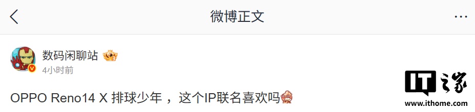 IT之家 7 月 22 日消息,多名博主今天在微博透露,OPPO Reno 14 系列手机将与《排球少年》IP 展开联动。