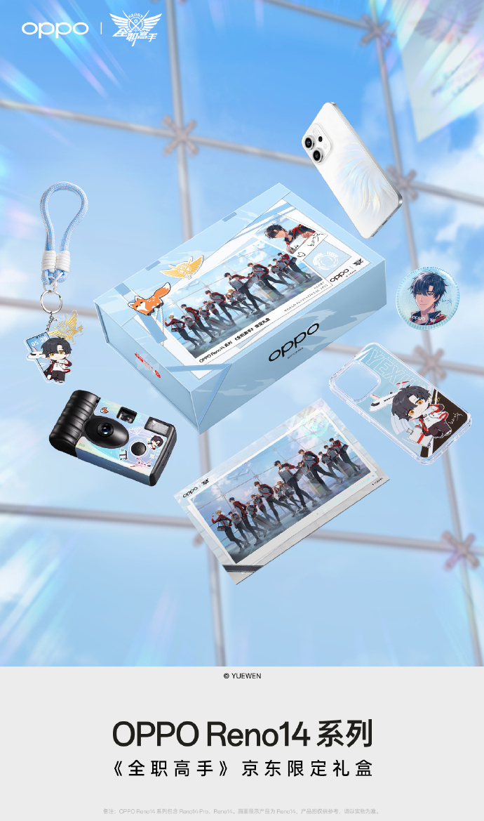 IT之家查询发现,OPPO 在 5 月 10 日时推出过一款《全职高手》限定礼盒,内含 Reno 14 系列手机、叶修限定徽章、全员出发路透限定色纸、一次性胶卷机、手机壳、Q 版挂件等周边产品。