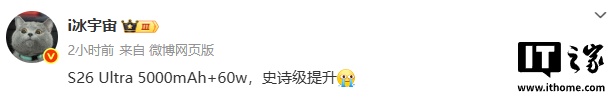 文章来源于互联网:消息称三星 Galaxy S26 系列手机搭载骁龙 8 Elite2 for Galaxy 芯片,Ultra 版支持 60W 快充