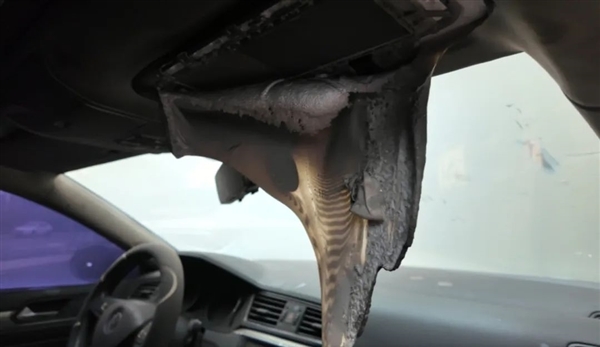 车主介绍,那天自己正好把备用机忘记在车里了,平常也不太用的,所以说没多大关注这件事情,晚上10点多钟过来开车,打开车门,发现副驾驶被烧掉了。