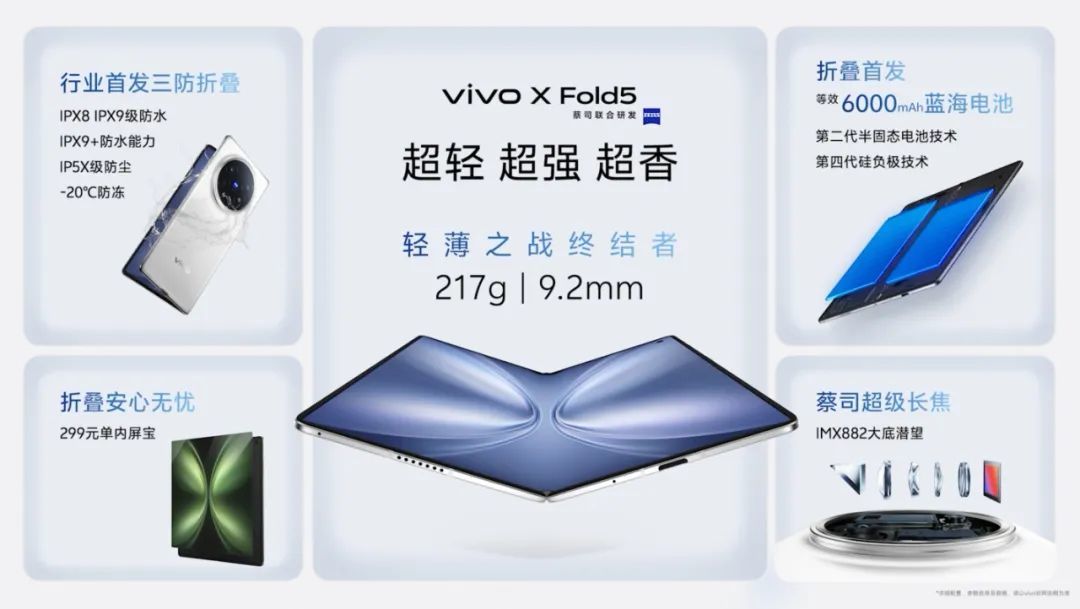 6月25日,vivo X Fold5上市发布,凭借217g全球最轻大折叠、行业唯一三防大折叠设计、搭载蔡司超级长焦等八大行业领先的硬核科技,再次拉高折叠屏的上限。让这个曾被视为“小众尝鲜品”的品类,正在以更快的速度走向主流。