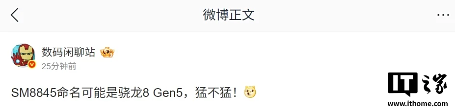 IT之家 8 月 1 日消息,博主 @数码闲聊站 今日爆料称,SM8845 命名可能是骁龙 8 Gen5