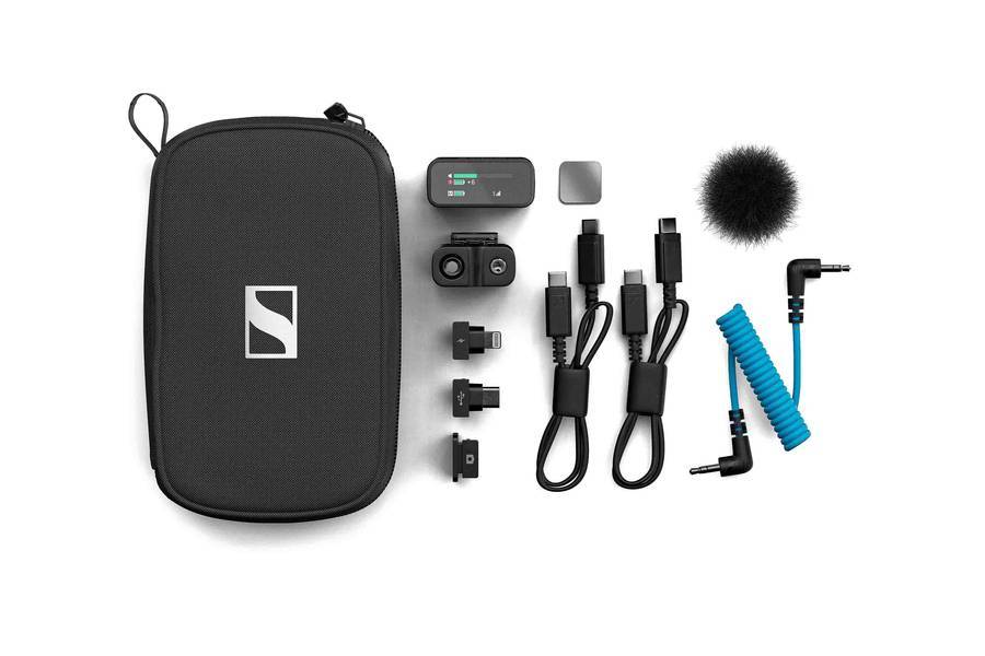 Profile Wireless单通道麦克风系统包装内含一个结实的便携包,其中有一个带迷你防风罩和磁力支架的夹式麦克风、一个双通道接收机、两根USB线、一个USB-C和Lightning适配器、一根摄像机线和一个冷靴座。由于所有Profile Wireless组件均可单独购买,用户可以在购买后将系统扩展为双通道配置。