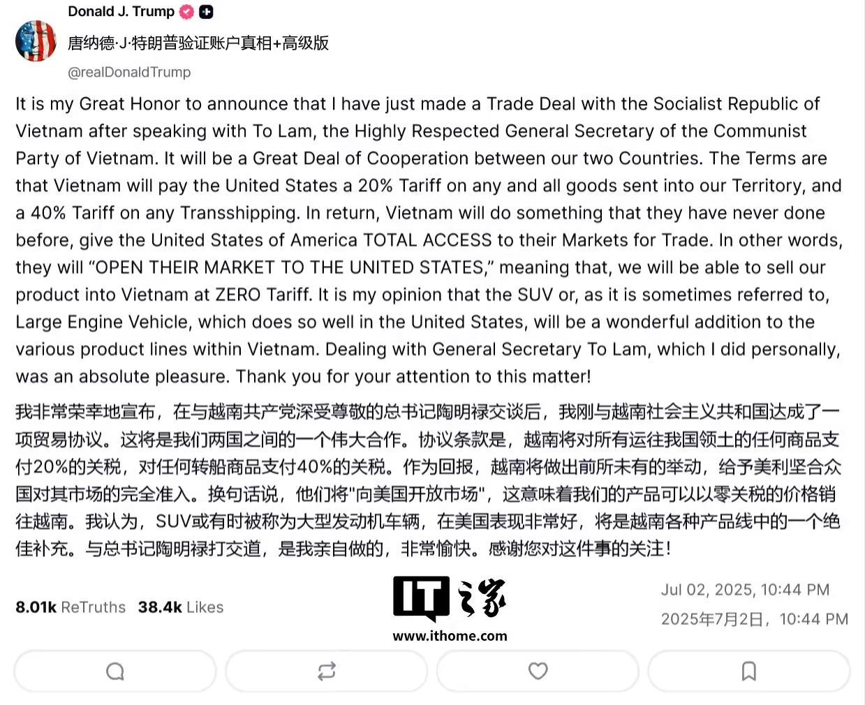 IT之家 7 月 3 日消息,科技媒体AppleInsider昨日(7 月 2 日)发布博文,报道称美国和越南达成新的贸易协定,导致iPad、AirPods和Mac mini在内的多款苹果产品进口成本飙升。