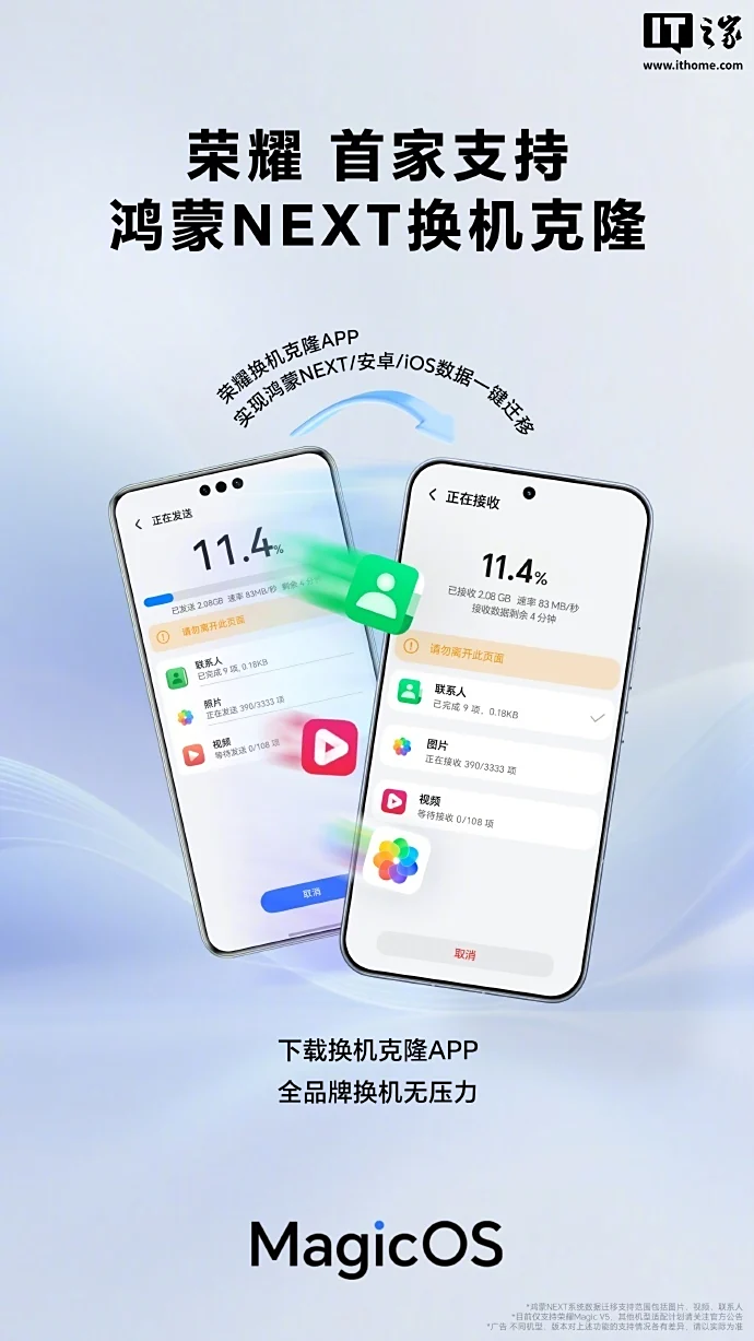 行业首家支持鸿蒙 HarmonyOS NEXT 换机克隆,荣耀上新“换机克隆”App