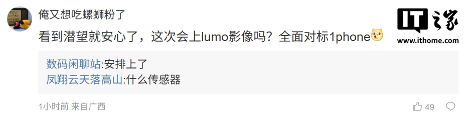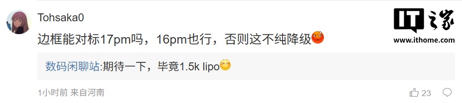 后续有用户在评论区询问:“边框能对标 17PM 吗,16PM 也行,否则这不纯降级 消息称某厂 SM8850 工程机相机 Deco 为左上角小方矩阵,预计为一加 15 系列”,博主回复道:“期待一下,毕竟 1.5K LIPO 消息称某厂 SM8850 工程机相机 Deco 为左上角小方矩阵,预计为一加 15 系列”;另一位用户询问道:“看到潜望就安心了,这次会上 LUMO 影像吗?全面对标 1Phone 消息称某厂 SM8850 工程机相机 Deco 为左上角小方矩阵,预计为一加 15 系列”,博主则回复道:“安排上了”。