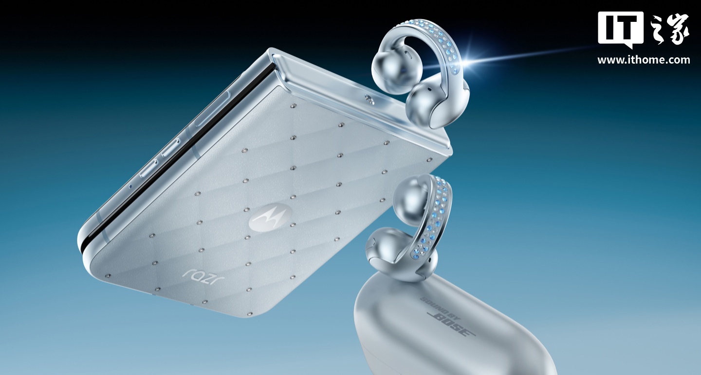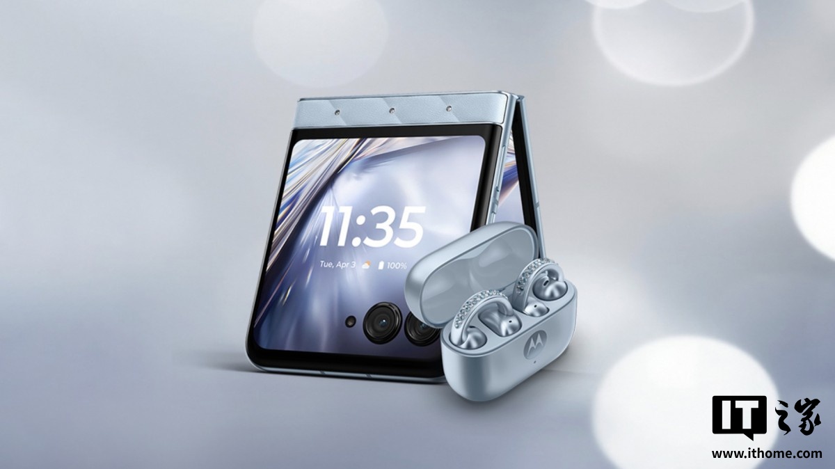 IT之家 8 月 6 日消息,摩托罗拉与知名珠宝品牌施华洛世奇合作,发布了“Brilliant Collection”限量版系列。该系列包含两款设备:Razr 2025(又称 Razr 60)折叠手机以及 Moto Buds Loop 无线耳机,均采用限量版彩通“冰融”(Pantone Ice Melt)配色,并镶嵌施华洛世奇水晶,彰显奢华与独特。