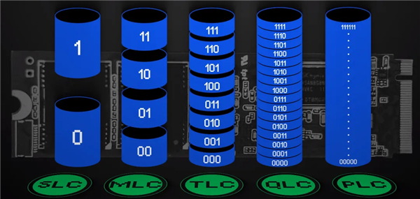 一条路是在一个平面上玩命塞东西,也就是咱们常听到的 SLC、MLC、TLC、QLC。就好比一个房间,SLC 只住 1 个人,体验最好但贵得离谱;QLC 塞进去 4 个人,成本下来了,但寿命和速度也跟着打折。
