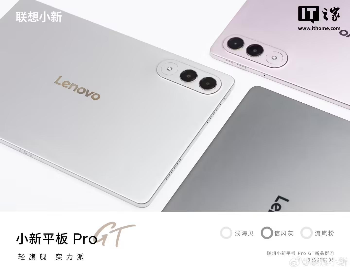 此外,联想小新官方微博上周公布了小新 AI 平板 Pro GT 的外观,新品沿用小立边设计,提供浅海贝、信风灰、流岚粉三款配色,后置竖向排列的镜头模组(预计为双摄 + 闪光灯),同时配有手写笔配件,支持杜比音效等。