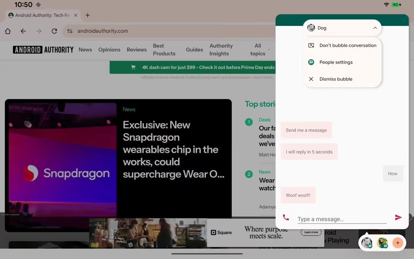 IT之家 7 月 12 日消息,科技媒体 Android Authority 昨日(7 月 11 日)发布博文,报道称在 Android Canary 频道首个预览版中,谷歌在平板、折叠手机等大屏幕安卓设备上,改进了“气泡栏”(bubble bar)聊天体验。