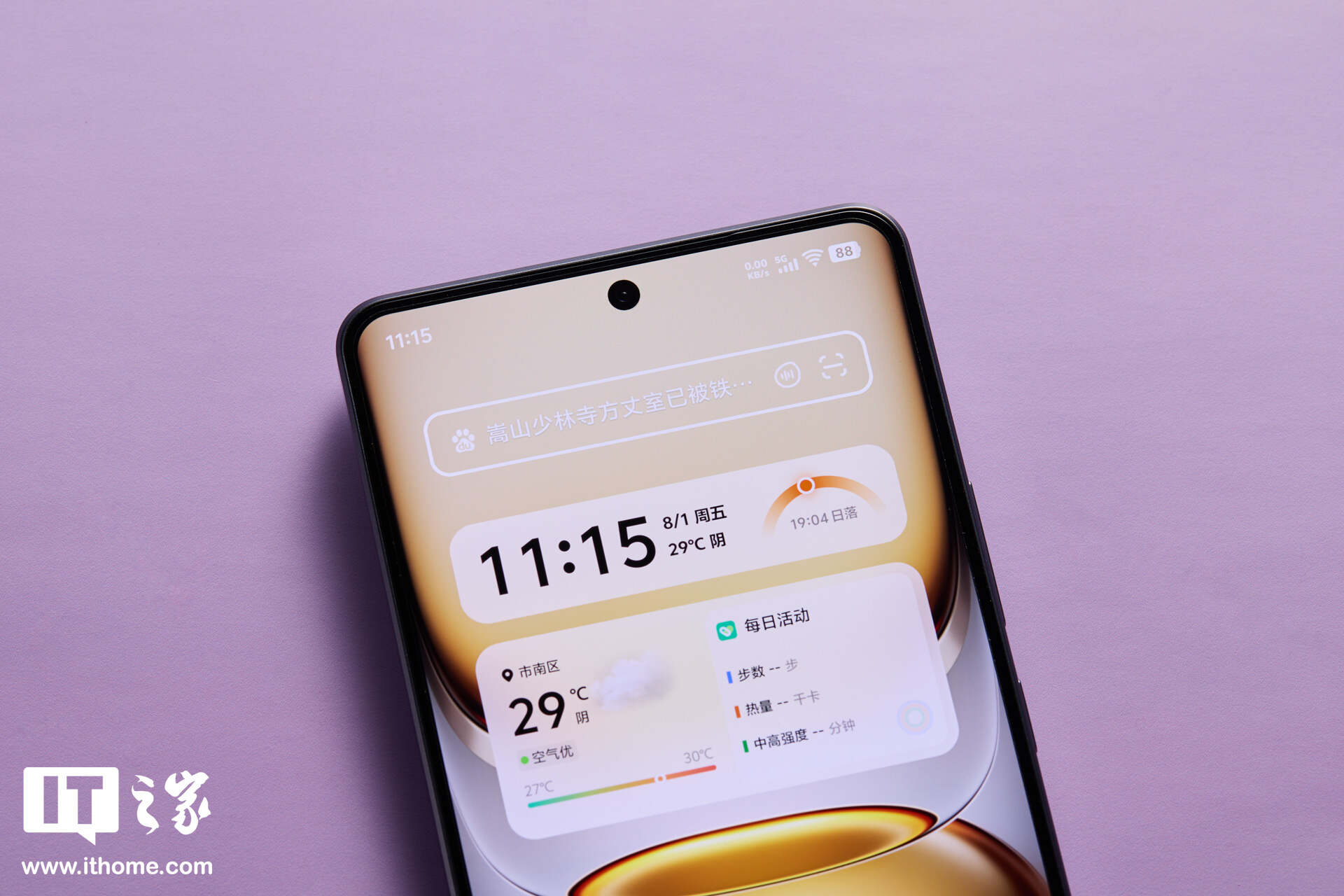 屏幕直接衔接到中框上,没有塑料支架,亮屏后窄边观感还不错,屏幕之上是德国肖特定制的金刚盾玻璃。