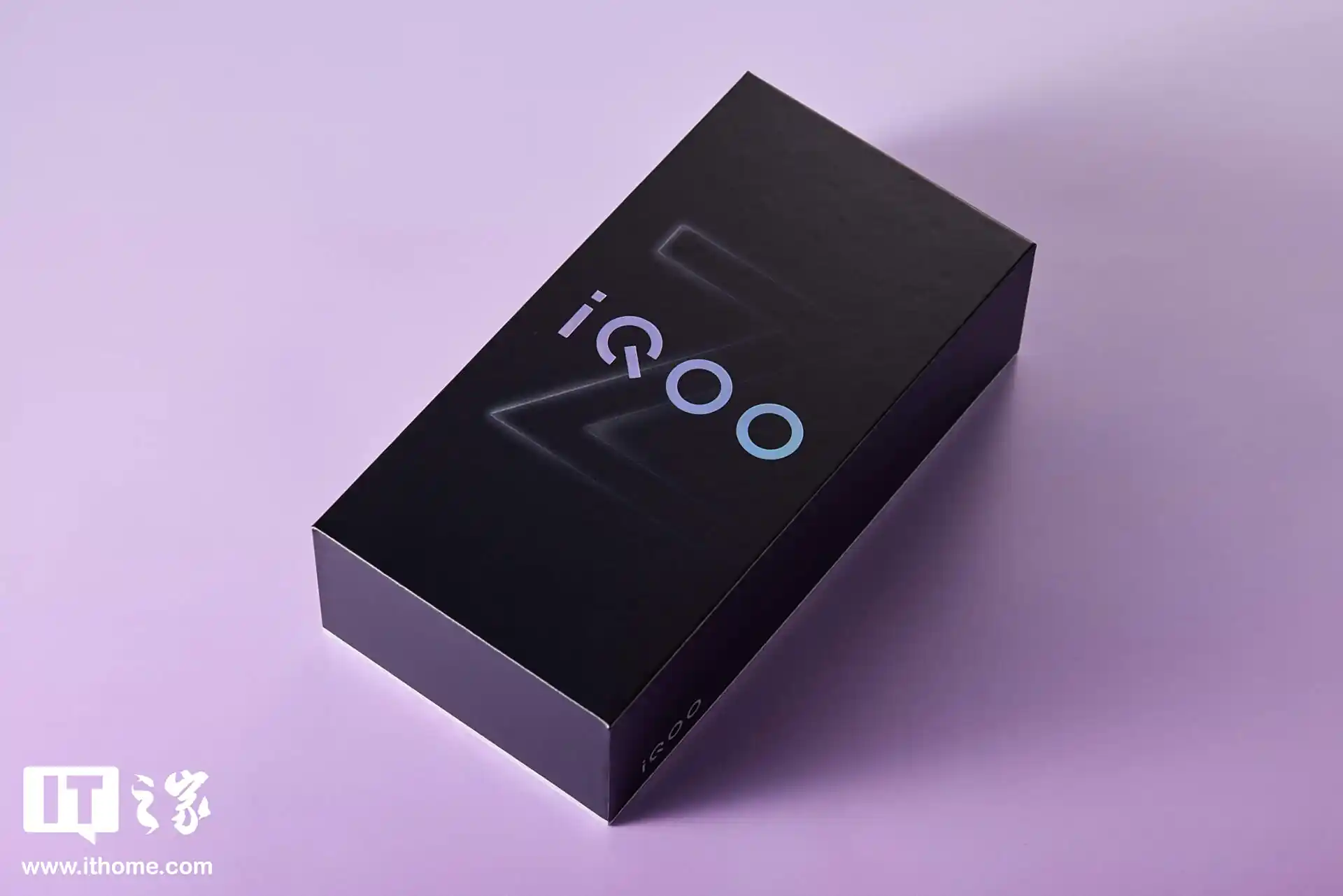 包装方面,依旧是熟悉的 iQOO Z 系列家族设计,若隐若现的“Z”印在镭射的 iQOO logo 之下。