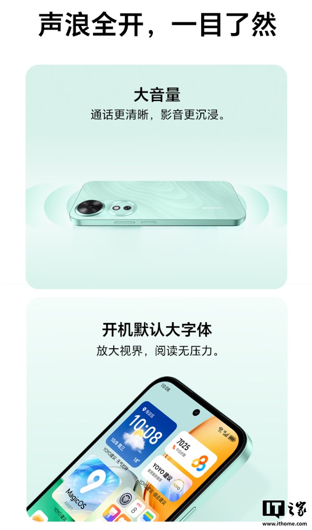 IT之家 8 月 8 日消息,荣耀 Play10C 手机现已上市,搭载联发科天玑 6300 处理器和 6000mAh 电池,支持 IP64 级防水,4+128GB 版本标价 649 元,国补后约 551.65 元。