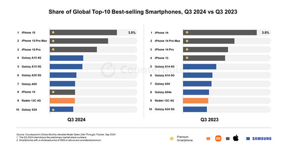 相同的是,REDMI 12C、13C和14C都进入过全球手机销量前十榜单。