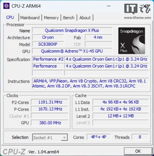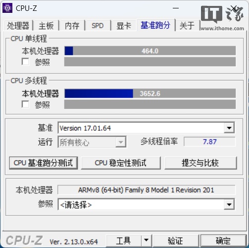 首先是 CPU-Z 的原生 ARM 版本测试。