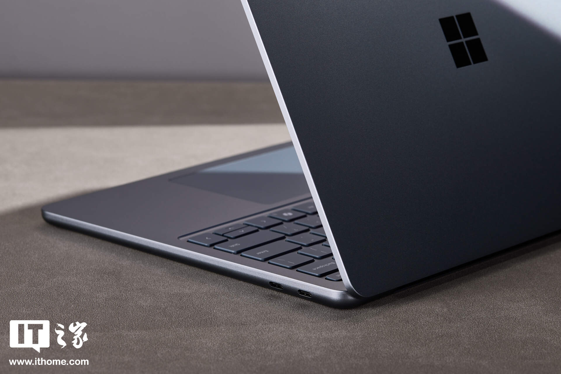 接口方面,Surface Laptop 13 英寸版取消了 Surface Connect 充电接口,转而配备了两个 USB-C 3.2 接口,支持充电、数据传输和 DisplayPort 1.4a 功能,此外还有一个 USB-A 3.1 接口和耳机插孔。