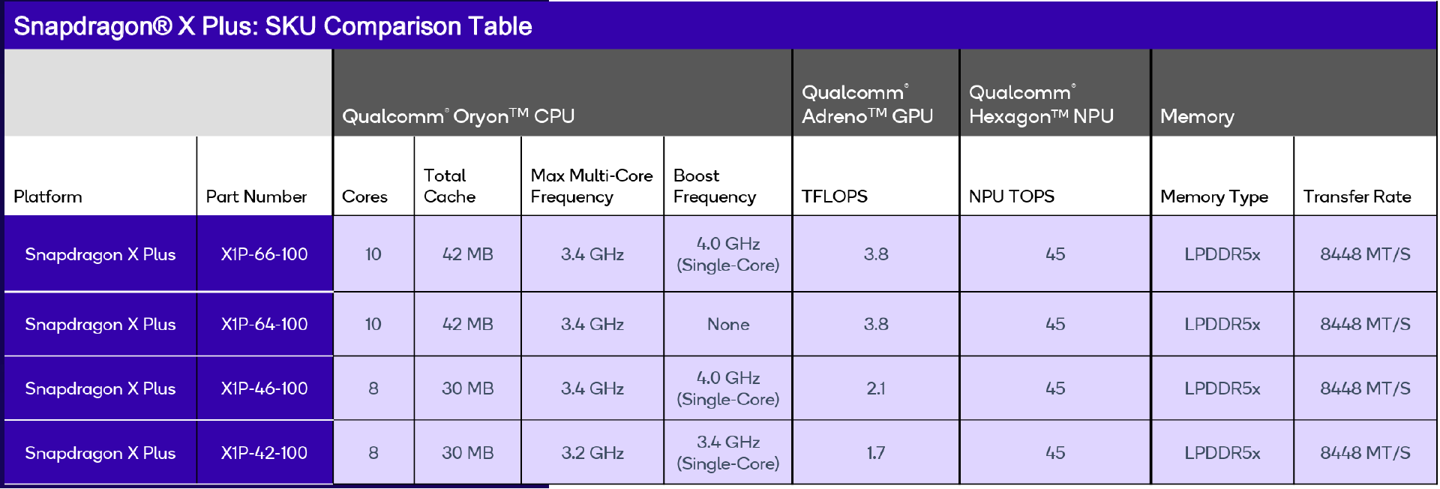 从规格来看,这就是骁龙 X Plus 系列中的 X1P-42-100 型号。