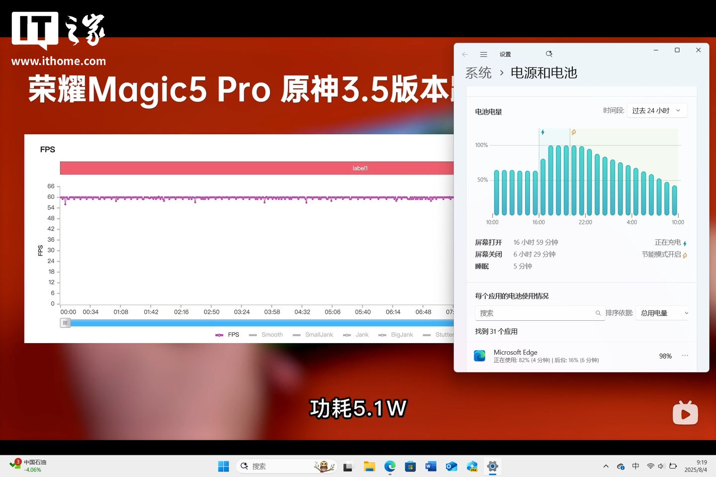 在IT之家的实际测试中,测试环境为 WiFi 连接,从 100% 电量开测,亮度设置为 20%,音量调至 10%,同时开启系统省电模式并设置电池为最佳能效。
