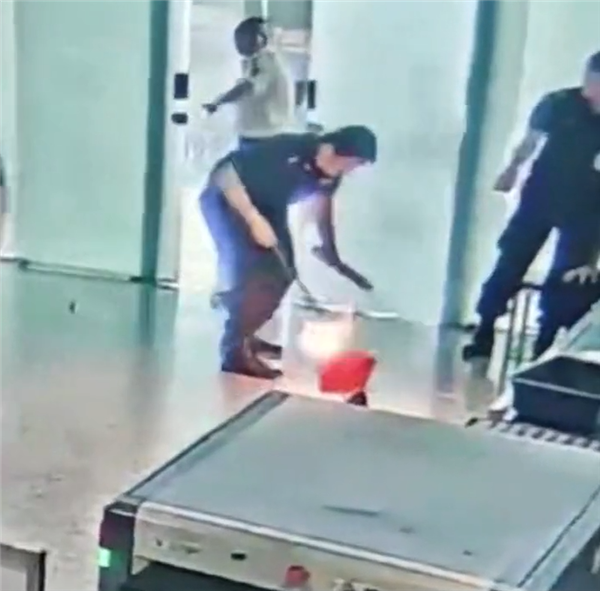 据了解,事发7月16日,一名男子因携带的充电宝不符合规定被拦下后,情绪失控将其砸向地面,充电宝瞬间燃起火球。
