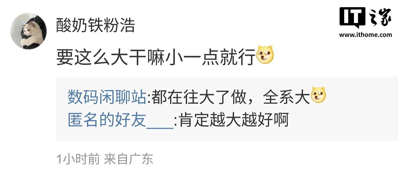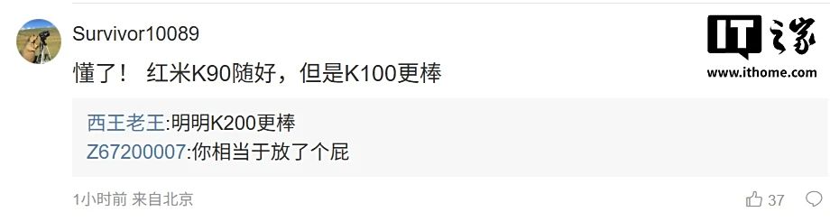 后续有用户在评论区表示:“可惜屏幕还是 LTPS”,博主回复道:“LTPS 不是优点吗”;另一位用户则询问道:“要这么大干嘛小一点就行 消息称某厂子系新旗舰工程机将搭载 50MP 三摄、雾面工艺 / 金属中框,预计为小米 REDMI K90 系列”,博主则表示:“都在往大了做,全系大 消息称某厂子系新旗舰工程机将搭载 50MP 三摄、雾面工艺 / 金属中框,预计为小米 REDMI K90 系列”。