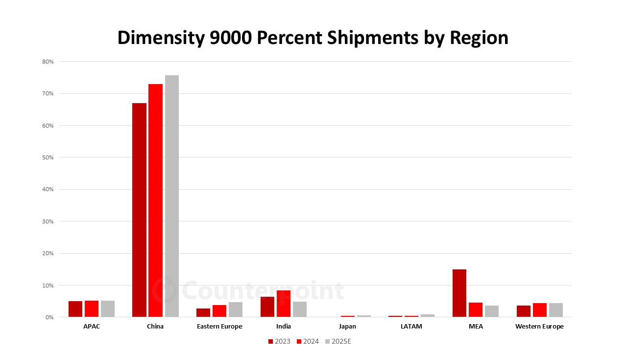 中国市场是 Dimensity 9000 系列的核心战场。凭借 9400 芯片的强劲表现,联发科已占据中国高端 SoC 市场约三分之一份额。相较竞争对手,该系列在能效控制、散热表现、AI 算力与游戏性能方面具备优势,且无需支持毫米波,更适配国内 5G 网络环境。