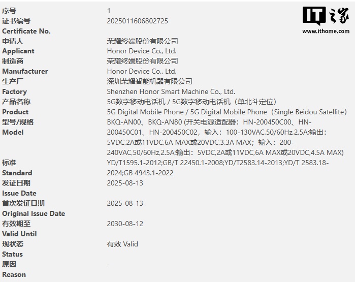 IT之家 8 月 14 日消息,@数码闲聊站 今天(8 月 14 日)发布微博,称:“荣耀 Magic8 系列入网了,国内首个通过 3C 认证的骁龙 8 Elite2 新机,支持 90W 有线充。之前说过先上中屏 + 大屏,你们对这代新机有何期待?”