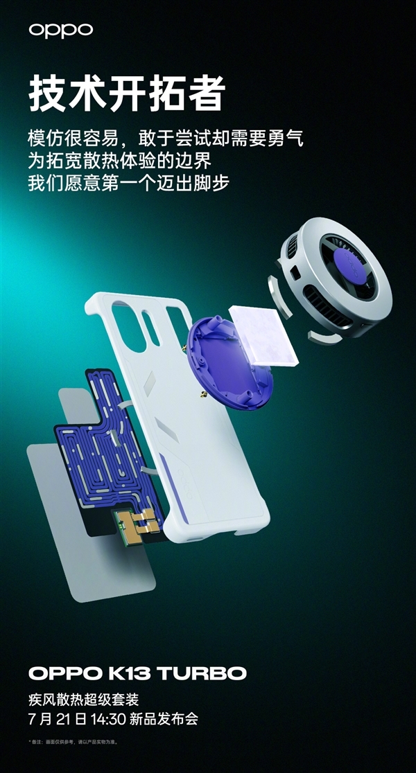 快科技7月19日消息,OPPO K13 Turbo系列将于7月21日14:30发布,新机最大的特点就是自带风冷,是OPPO首次配备内置风扇。