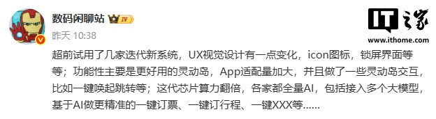 IT之家 8 月 17 日消息,博主 @数码闲聊站 昨日爆料称,超前试用了几家迭代新系统,UX 视觉设计有一点变化,icon 图标,锁屏界面等等。