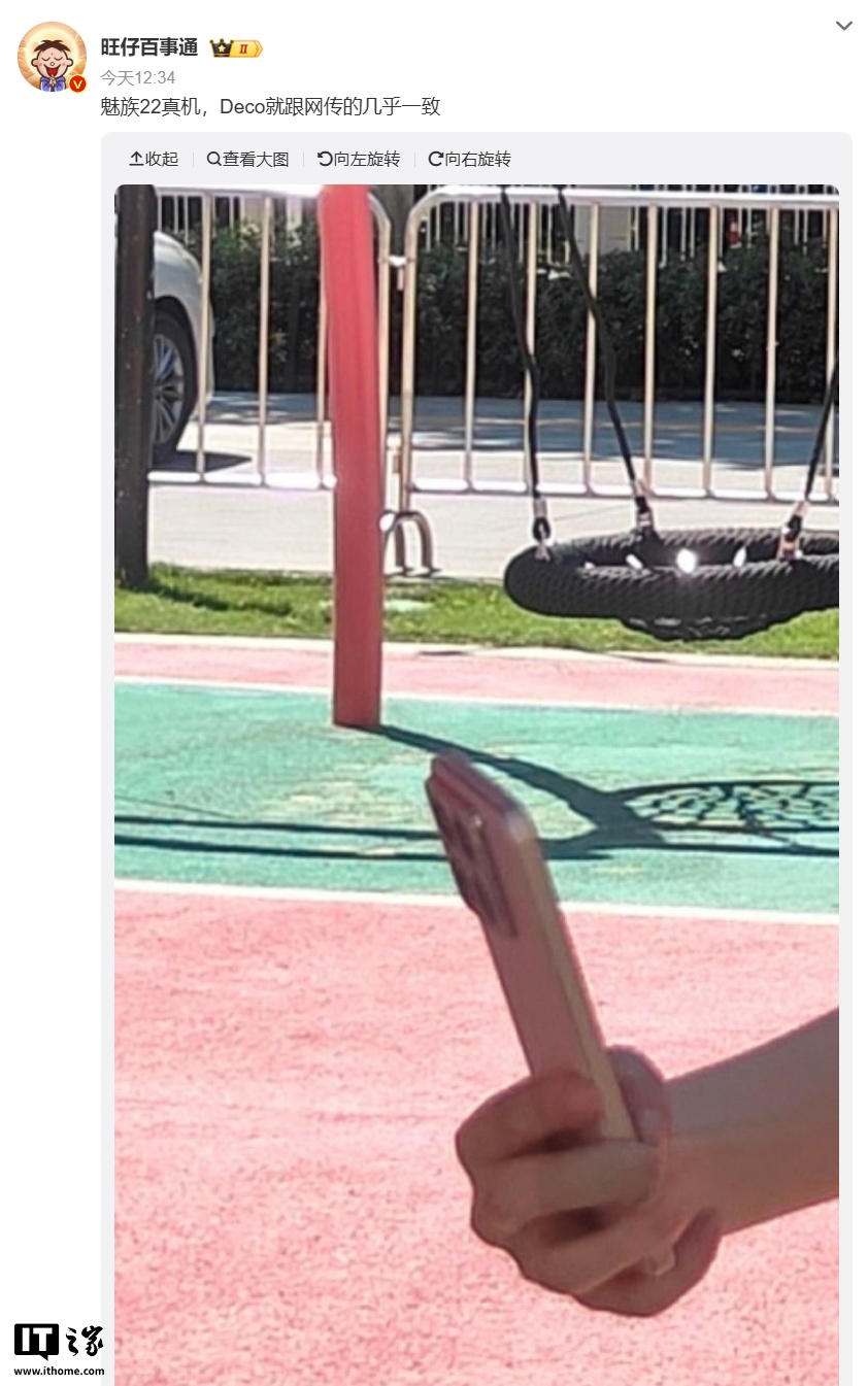 IT之家 8 月 18 日消息,博主 @旺仔百事通 今天在微博曝光了魅族 22 手机的真机外观并表示:“Deco 就跟网传的几乎一致”。