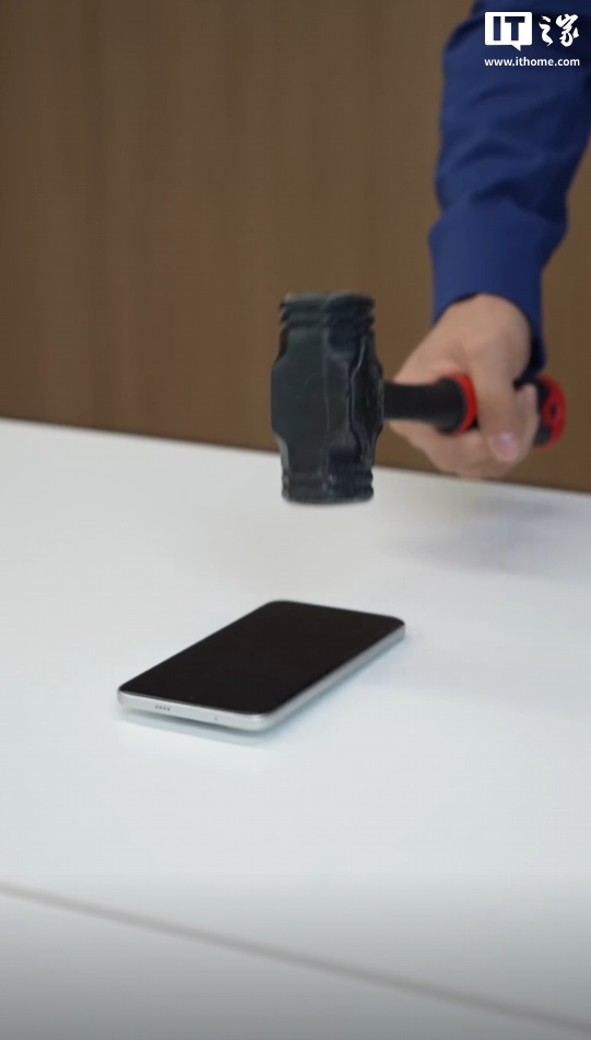 IT之家注意到,在新品发布前,小米集团总裁卢伟冰通过社交媒体分享了一段暴力实测视频,展示了 REDMI Note 15 Pro + 的坚固品质。在视频中,卢伟冰用小锤、中锤和大锤依次敲击手机屏幕,随后又用大摆锤模拟 1.8 米高度的跌落测试。经过如此高强度的测试后,手机依然完好无损。