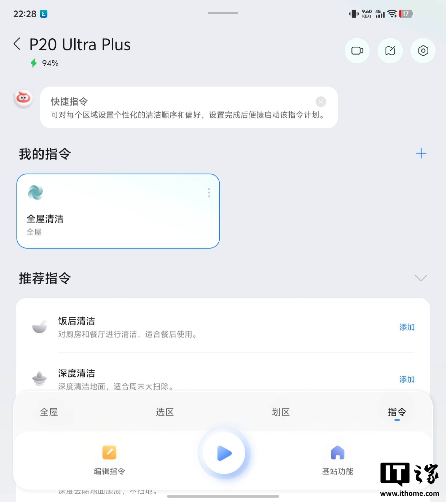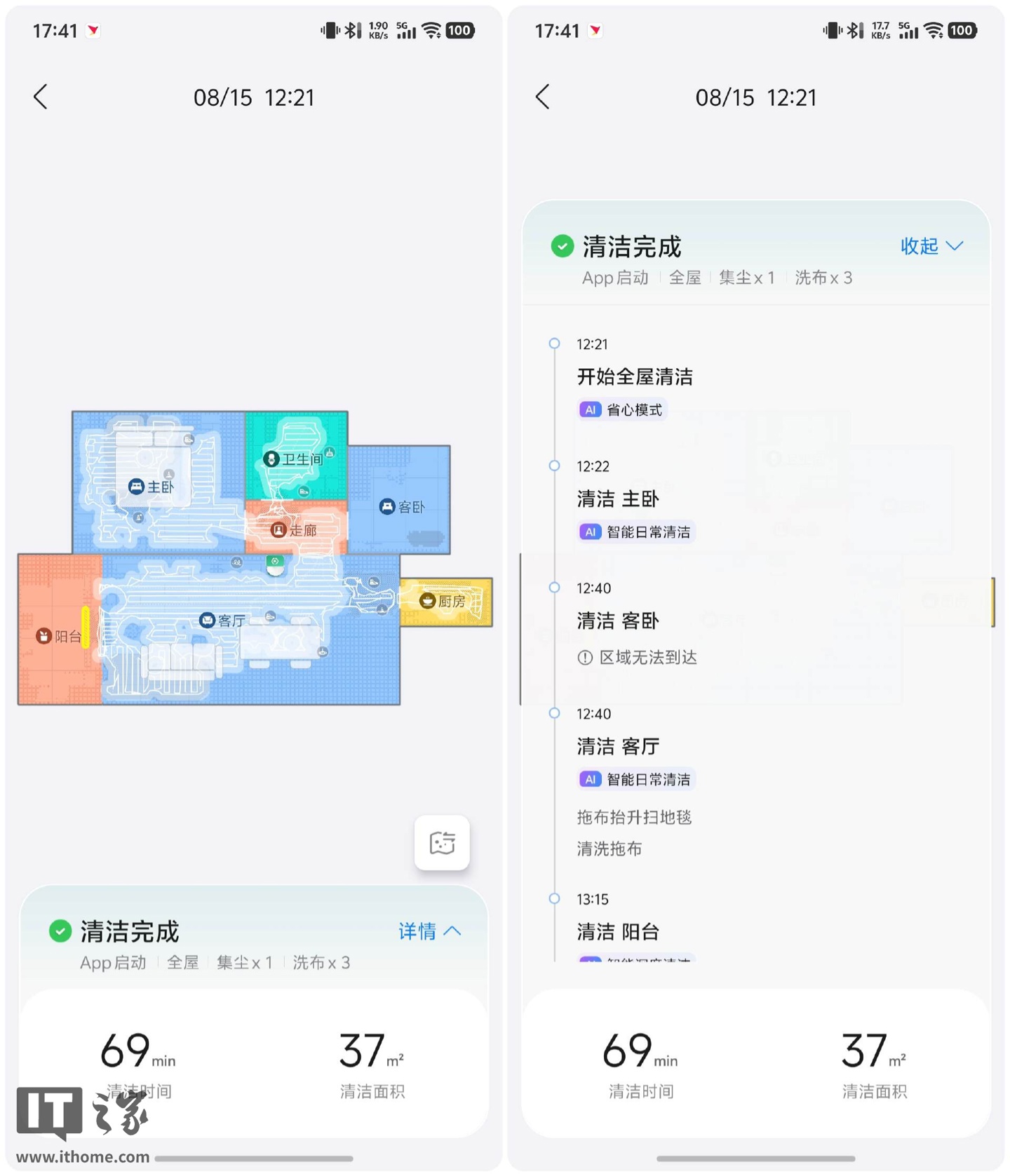 功能体验方面,石头 P20 Ultra Plus 的“省心模式”进化到了 4.0 版本 —— 能根据房间类型为不同区域定制专属的清洁参数,并且清洁进度会实时在 App 里汇报,整个清洁过程的动态、有没有异常情况(比如水箱缺水等)都一目了然。